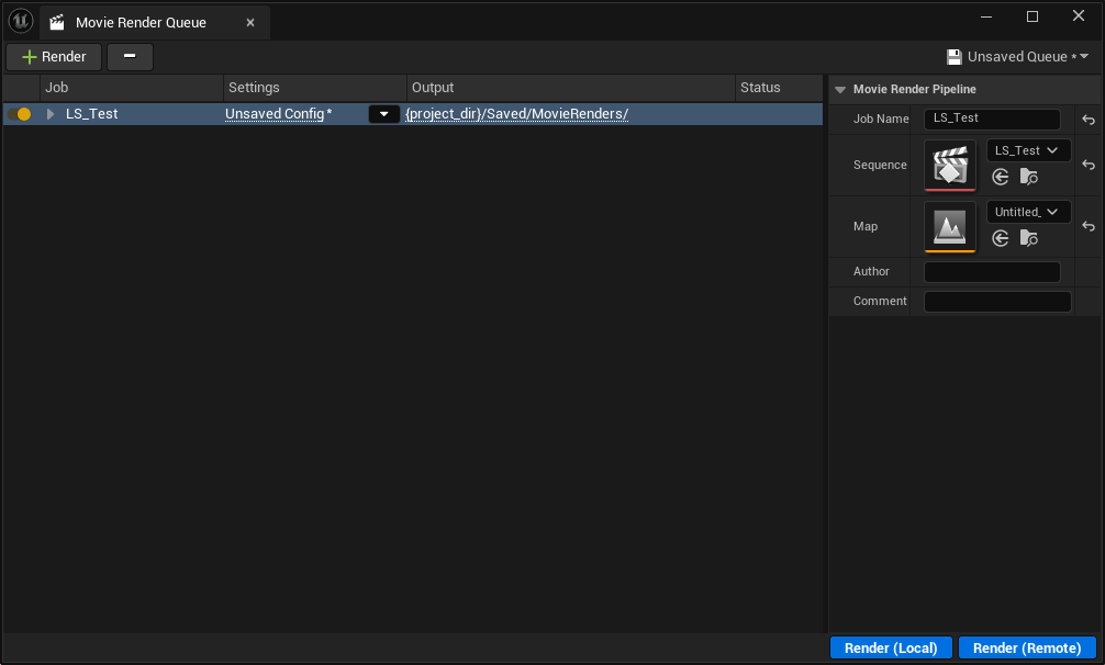 Click on ‘Unsaved Config’ to open the settings for the Movie Render Queue.
