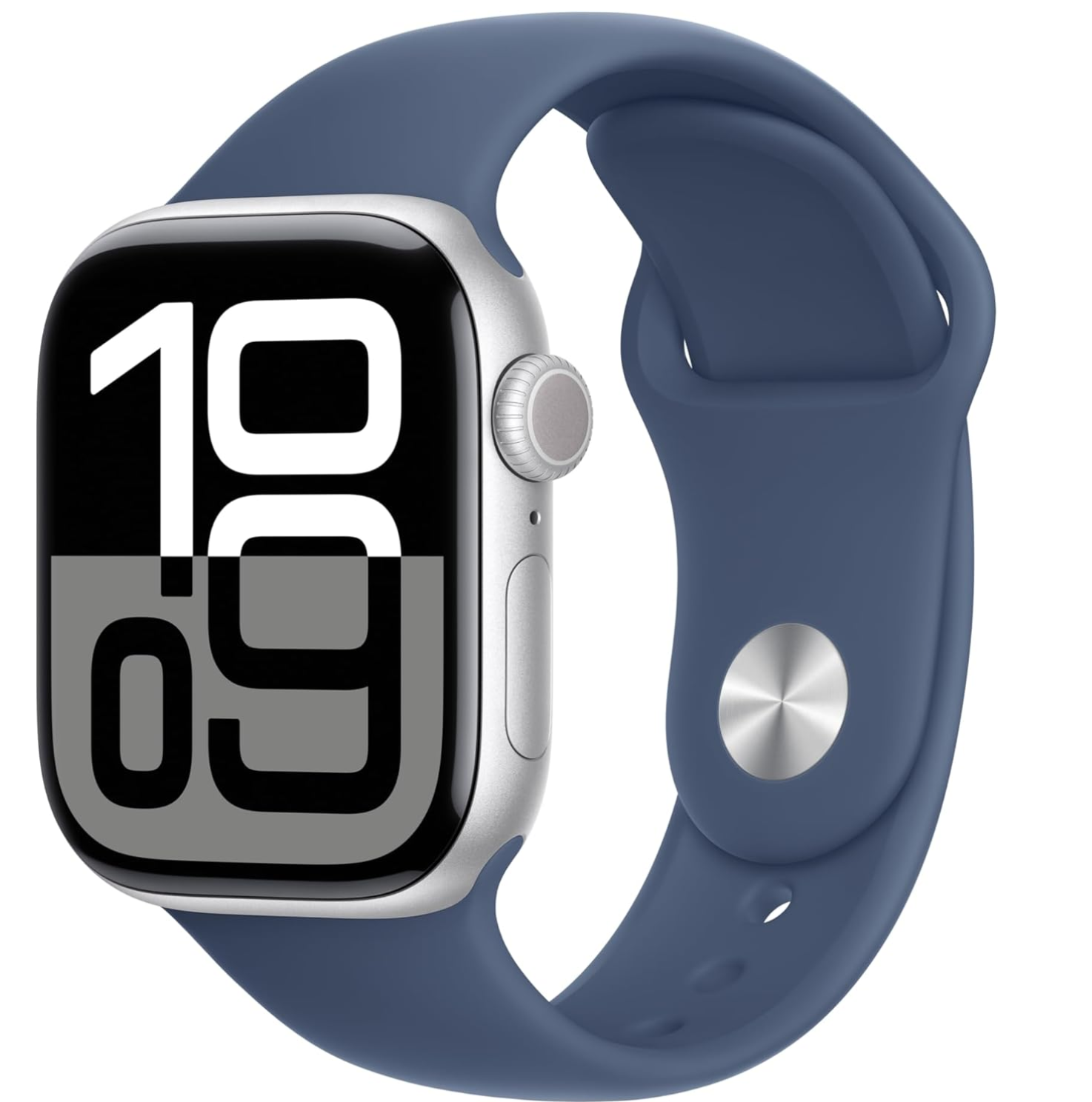 Apple Watch Series 10 [GPS 42mm case] Smartwatch with Silver Aluminium Case with Denim Sport Band – S/M. Fitness Tracker, ECG App, Always-On Retina Display,