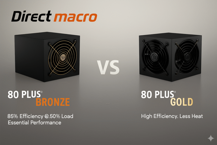 The core bronze vs gold PSU differences lie in their PSU efficiency ratings. A Gold PSU is significantly more efficient across all loads than a bronze unit. It increased efficiency translates to lower operational costs, less heat generation, and often higher quality components for improved load regulation PSU and transient response. While Bronze PSU strikes a good mix between cost and efficiency, Gold is technically superior due to higher performance and long-term savings.