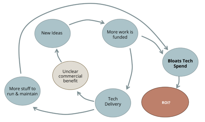 realize that an initiative has failed to deliver adequate business impact. If they did, they would decommission what was built and thereby