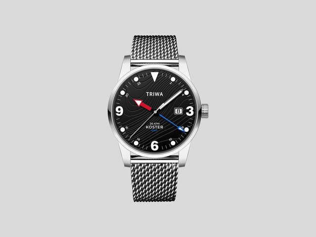 Named after the first and only marine nature park in Sweden, the Koster is Triwa’s first Traveler timepiece. Just like the rest of the brand’s sustainable watches, it’s as stylish and practical as it is eco-friendly. Based around the Ronda 515 24H movement, the semi-brushed 39-mm case and sapphire glass offer 20 ATM water resistance, while the dial is made of plastic rescued from the ocean.